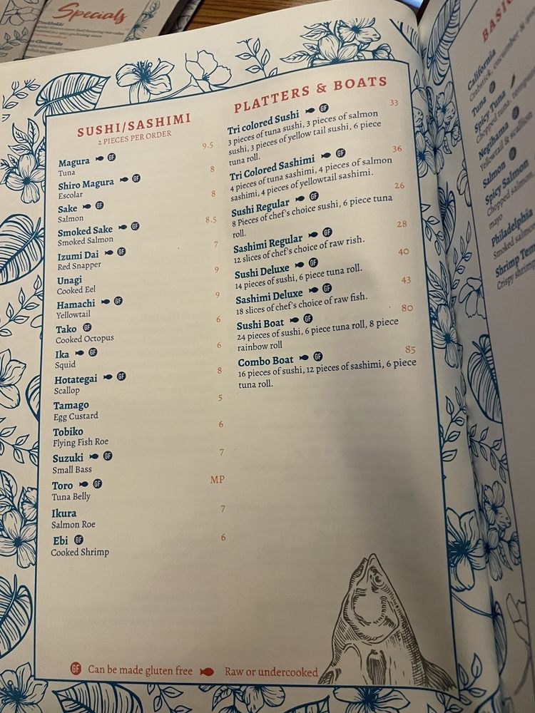 (sliced fish) 8 pieces of chef's choice sashimi, 6 pieces of tuna roll