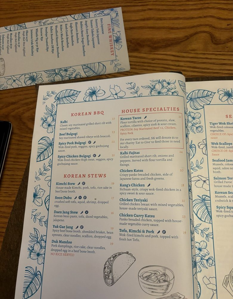 Introducing Seoul Kitchen, an Asian Fusion restaurant located in Westford, MA, offering a unique blend of Korean and Sushi Bar cuisine. With a variety of vegan and vegetarian options, Seoul Kitchen is not only inclusive but also caters to diverse dietary preferences. From Korean Dumplings to Tuna Tataki starters, and Lunch Sushi Meals like Sushi Combo and Sashimi Combo, the menu is filled with flavorful delights. Customers rave about the modern atmosphere, fast service, and delicious dishes like the Jap Chae, shrimp tacos, and kimchi bulgogi fries. The extensive menu variety, attentive staff, and live music create a vibrant dining experience at Seoul Kitchen. Whether you're craving traditional Korean flavors or fresh sushi creations, Seoul Kitchen has something for everyone to enjoy.